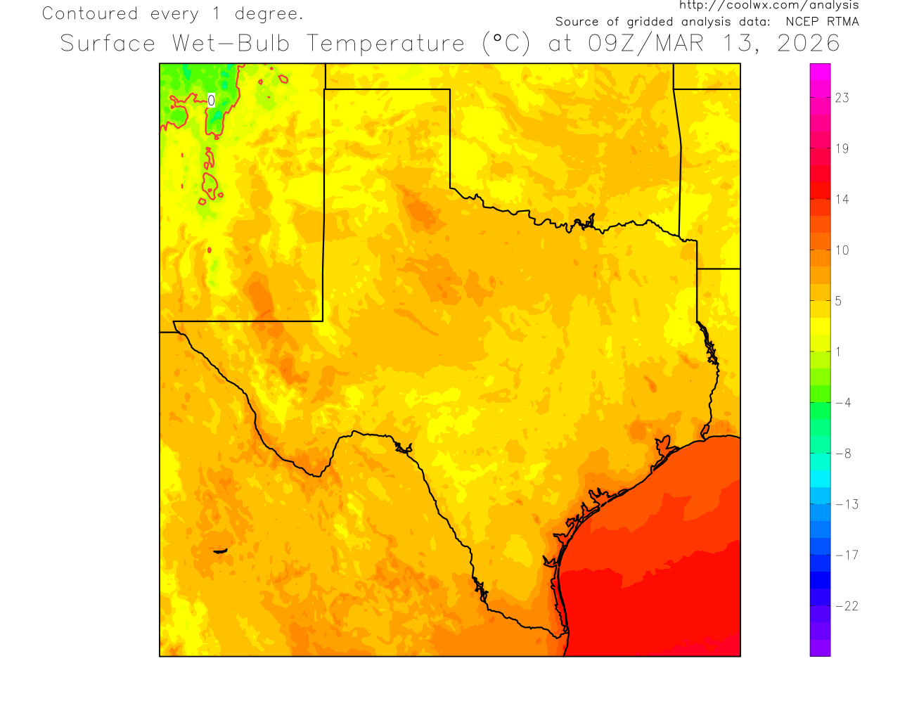 09Z Texas Analysis of Wet Bulb Temperature