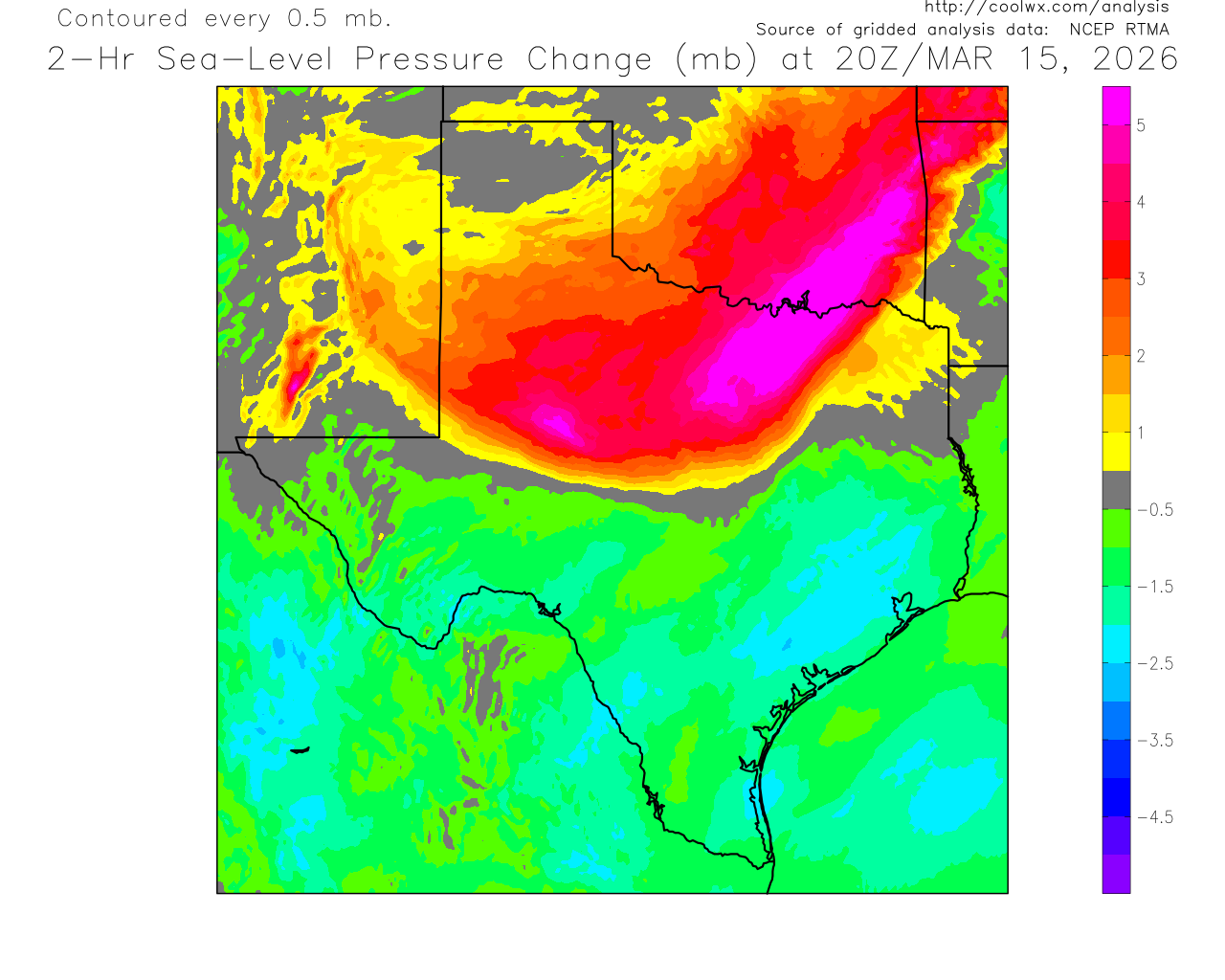Current Texas Analysis of 2-Hour Sea-Level Pressure Change